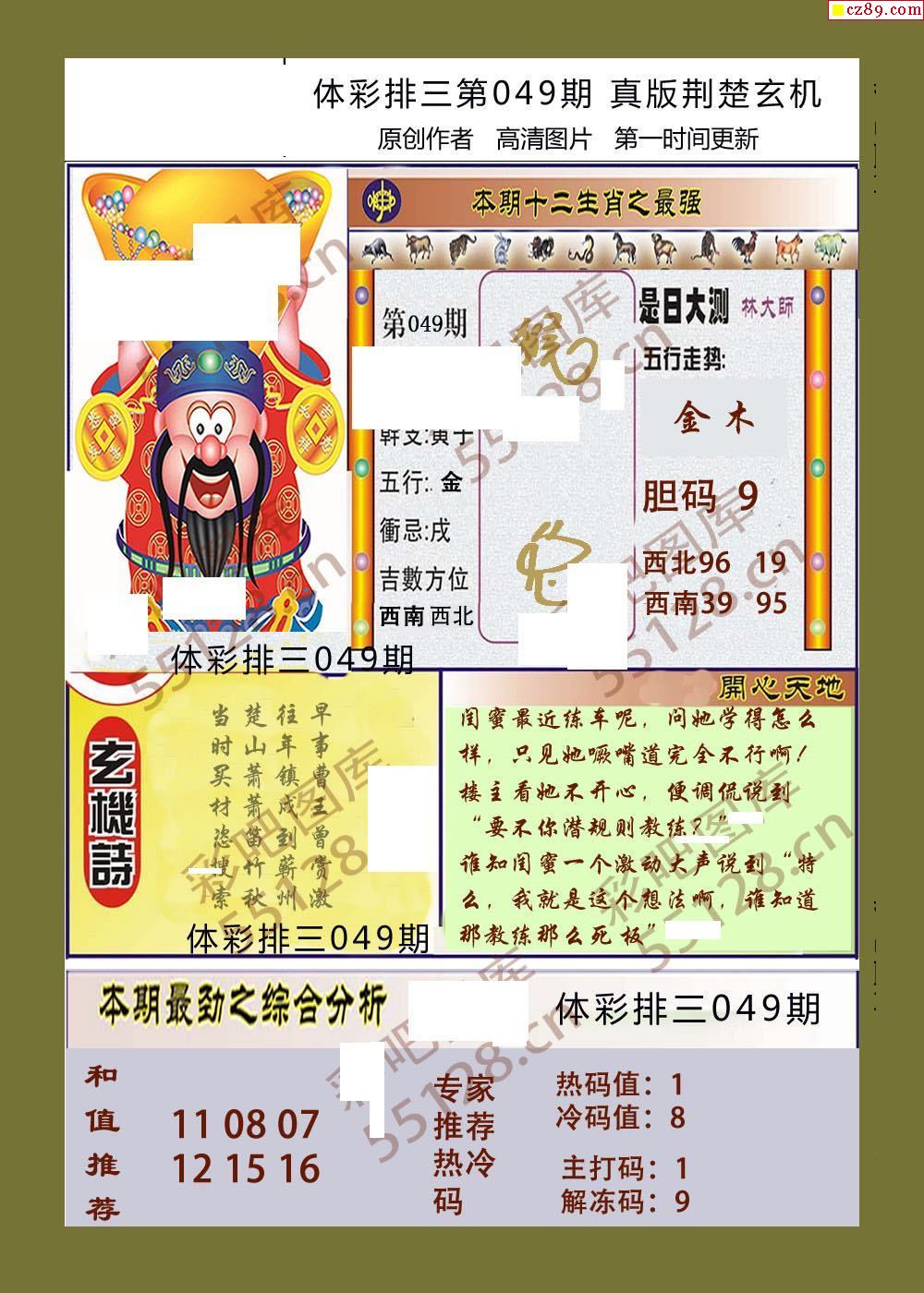 荆楚玄机049期体彩p3图谜